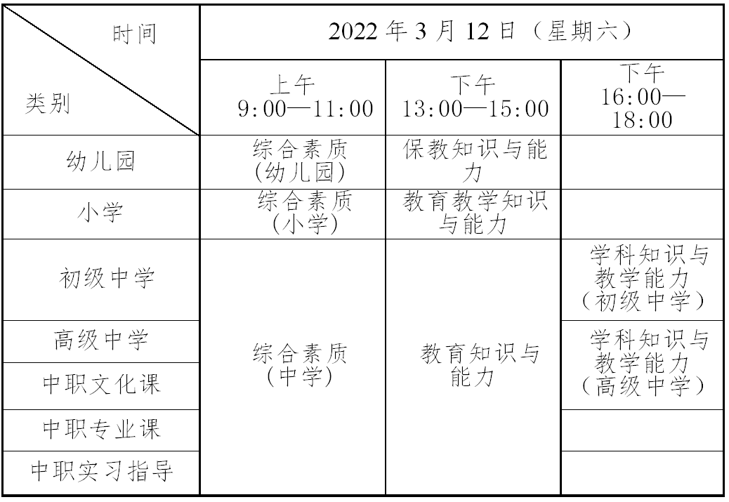 4.2022年上半年中小学教师资格考试(笔试)科目代码列表